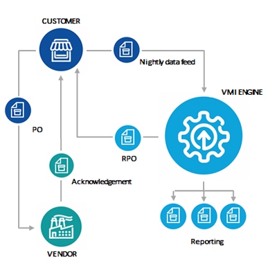The vendor is responsible for analysing, managing and optimizing the inventory flow for each VMI customer at each customer location